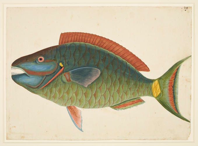 “The flesh is firm with large flakes (like Cod as it turned out upon cooking) and mild in taste, parrot fish is abundant in these waters and is a common meal".