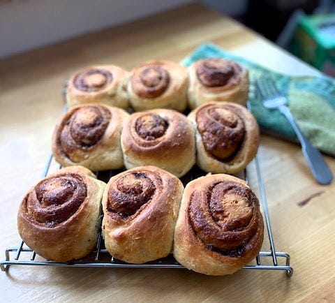 I baked up several different recipes for cinnamon rolls resulting in a surprising variety of results, thus sending me down the rabbit hole of cinnamon roll bakery. I won’t bore you with all the details, but suffice it to say we had cinnamon rolls aplenty in my community!